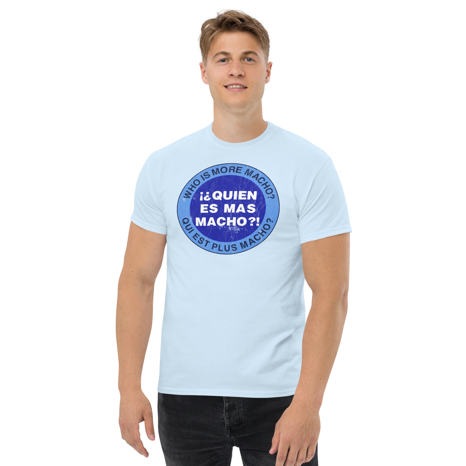 Quien Es Mas Macho? Retro Comedy T-Shirt 80s Parody Game Show Logo (Distressed) Unisex Classic Tee
